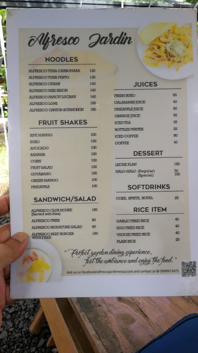 Welcome to Alfresco Jardin Restaurant, nestled in the heart of Tayabas, Quezon. This delightful eatery is a haven for food lovers, offering a menu brimming with delicious options that cater to every palate. Diners rave about the cozy ambiance, with its lush garden setting that creates a tranquil dining experience, especially popular for family gatherings.